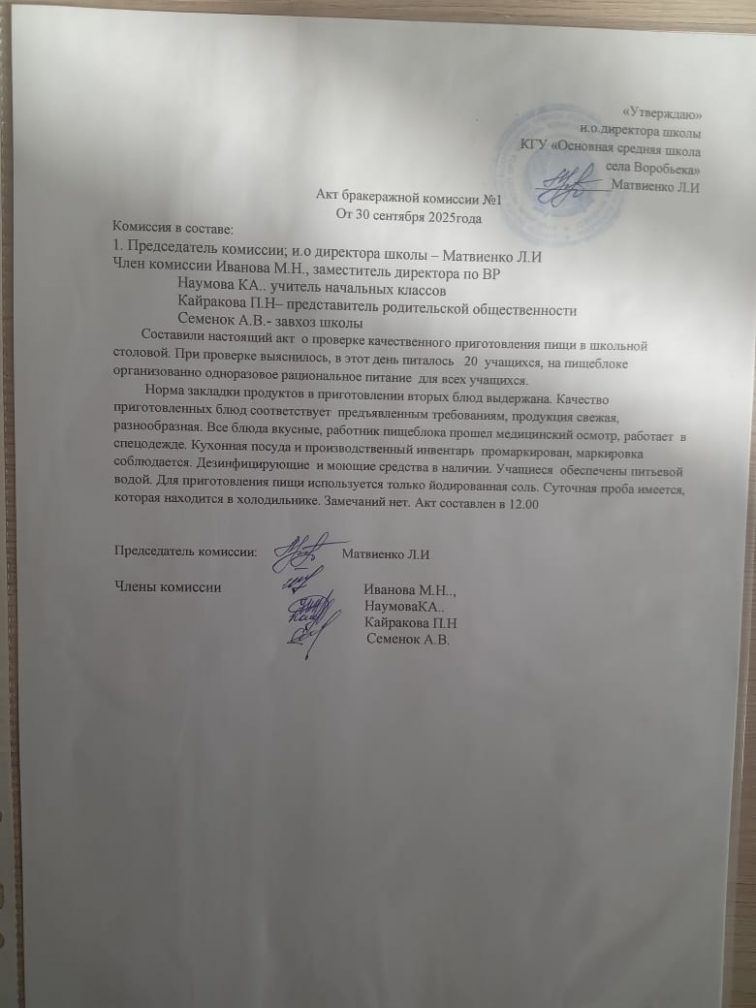 Бракераж комиссияларының актілері 2025-2026 оқу жылы